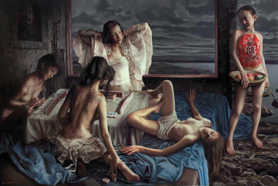 Right in front, the Asian lady with a tattoo on her back is China.